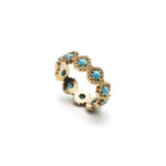 Bague éternité motif à étape avec turquoise taillée en cabochon