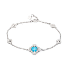 Cette bague exquise présente des pierres de turquoise naturelle taillées en cabochon dans un motif à étape signature, créant une pièce vibrante et sophistiquée qui traverse le temps avec élégance. Que ce soit comme pièce maîtresse pour une occasion spéciale ou comme symbole quotidien d'élégance, cette bague est le choix parfait pour ceux qui apprécient la fusion de la tradition et de l'innovation.