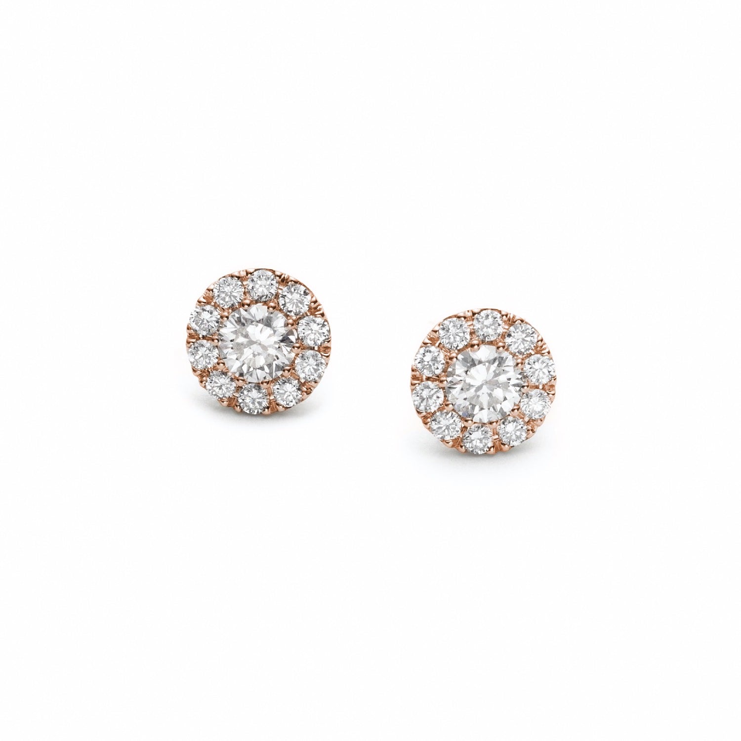 Round Brilliant Cut Diamond Halo Stud Earrings in Rose Gold