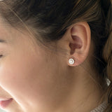 Round Brilliant Cut Diamond Halo Stud Earrings on a Model