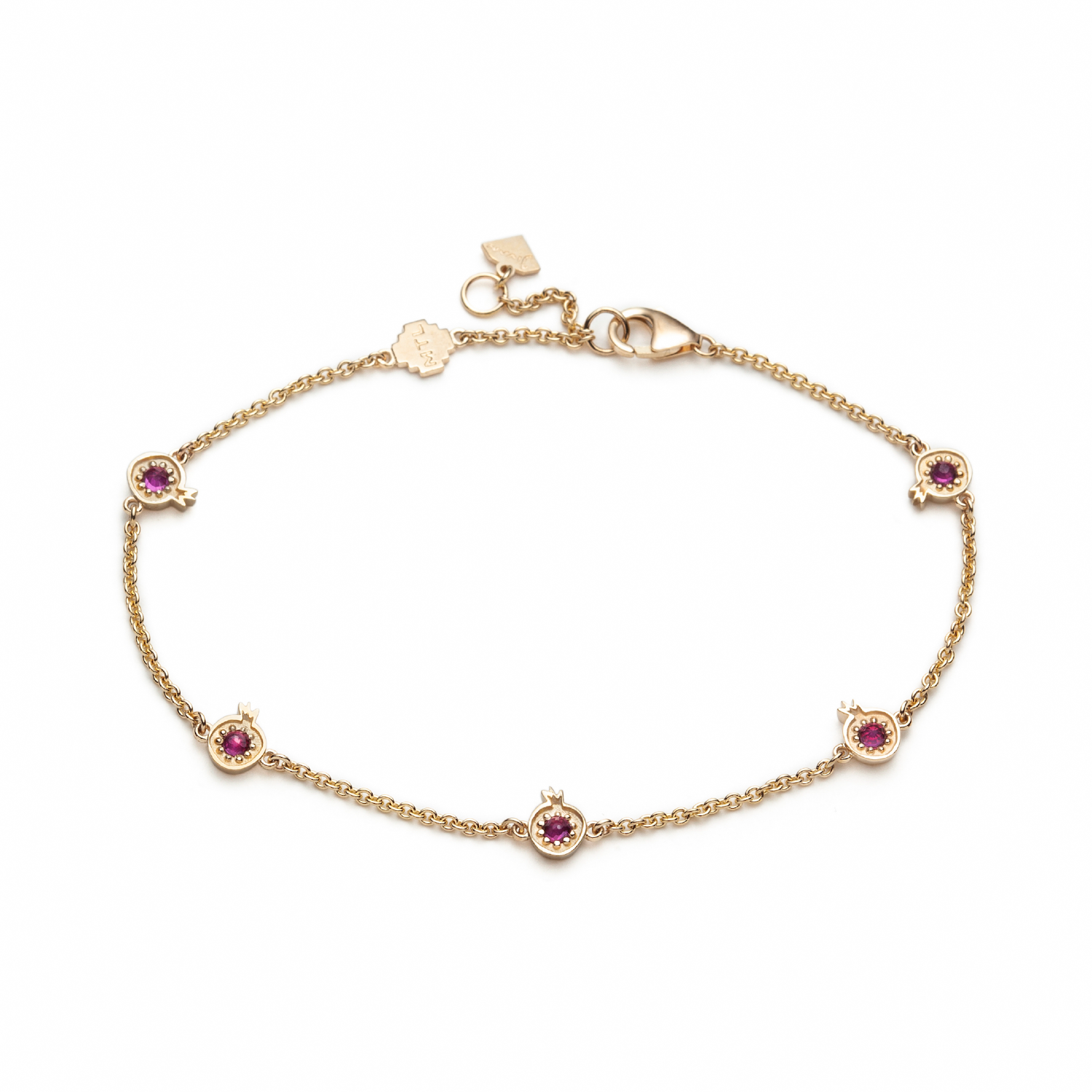 Pomegranate Ruby Five Mini Motif Bracelet in Yellow Gold