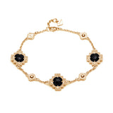 Double-Sided Rose Cut Black Onyx Step Motif Bracelet in Yellow Gold