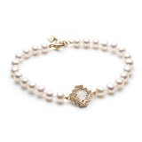 Double-Sided Rose Cut White Topaz Step Motif Pearl Bracelet in Yellow Gold