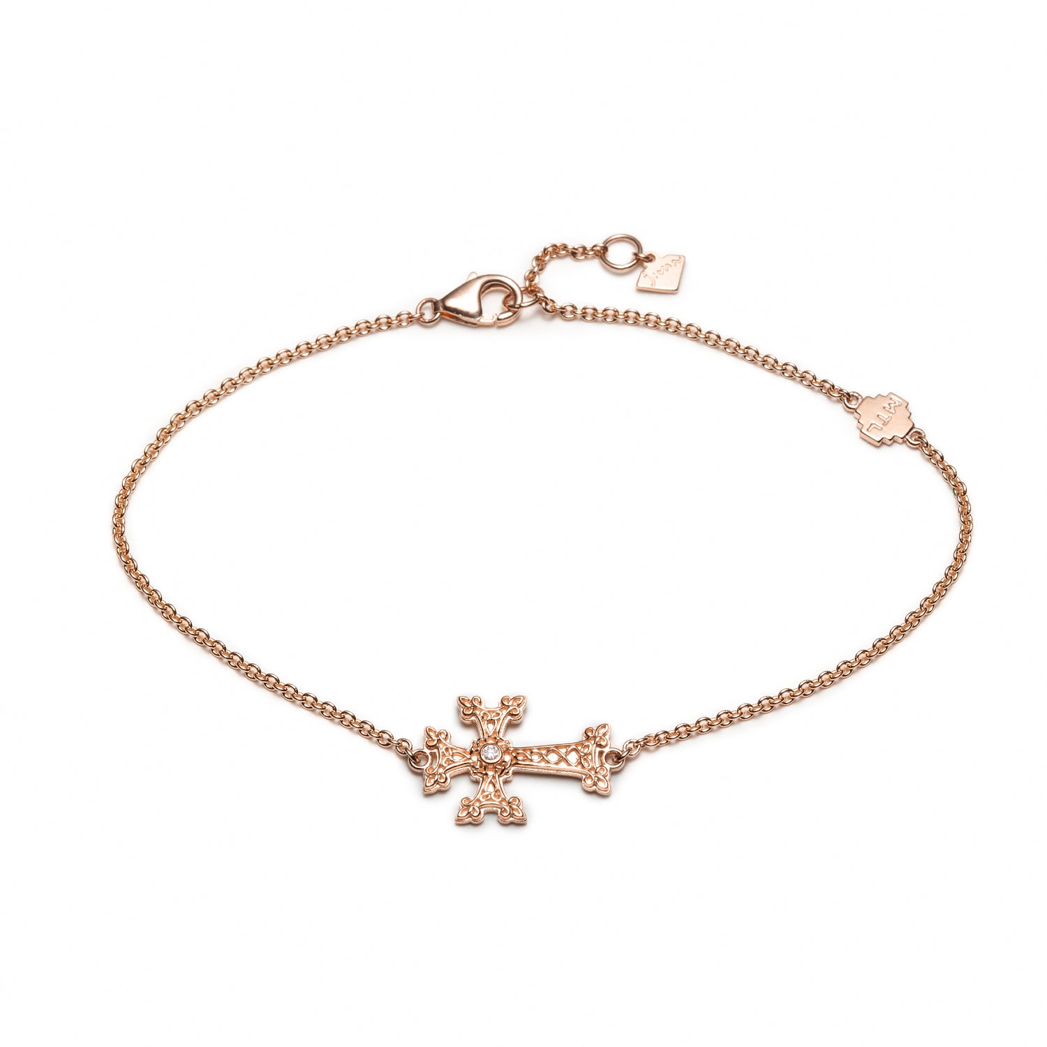 "Khachkar" Diamond Accent Armenian Mini Cross Bracelet in Rose Gold