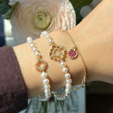 Diamond Pavé Reversible Step Motif Pink Pearl Bracelet