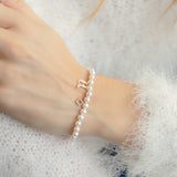 Armenian Initial and Step Motif Charm Pearl Bracelet in Rose Gold