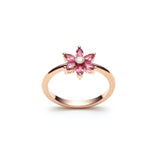 Marquise Cut Ruby and Round Brilliant Cut Diamond Flower Ring in Rose Gold