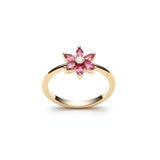 Bague fleur avec rubis taille marquise et diamant taille brillant rond