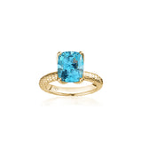 Lepia Cushion Swiss Blue Topaz Ring in Yellow Gold