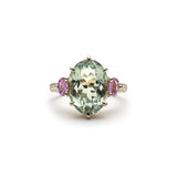 Mermaid Oval-Shaped Aquamarine and Pink Sapphire Three-Stone Ring