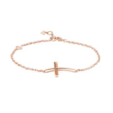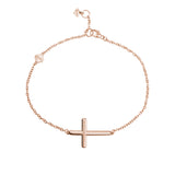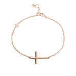 Horizontal Curved Sideways Cross Bracelet in Rose Gold