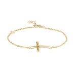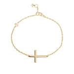 Horizontal Curved Sideways Cross Bracelet in Yellow Gold