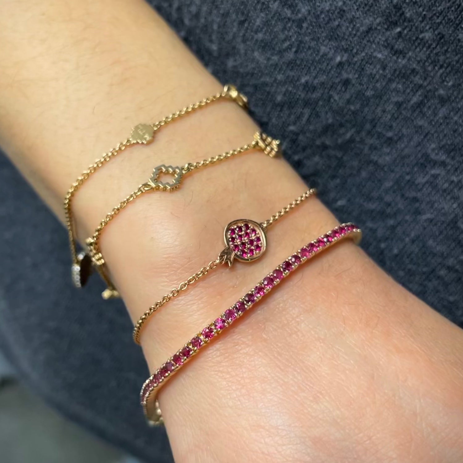 Round Cut Ruby Tennis Bracelet on a Hand