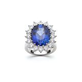 Oval-Shaped Blue Sapphire and Round Brilliant Cut Diamond Engagement Ring