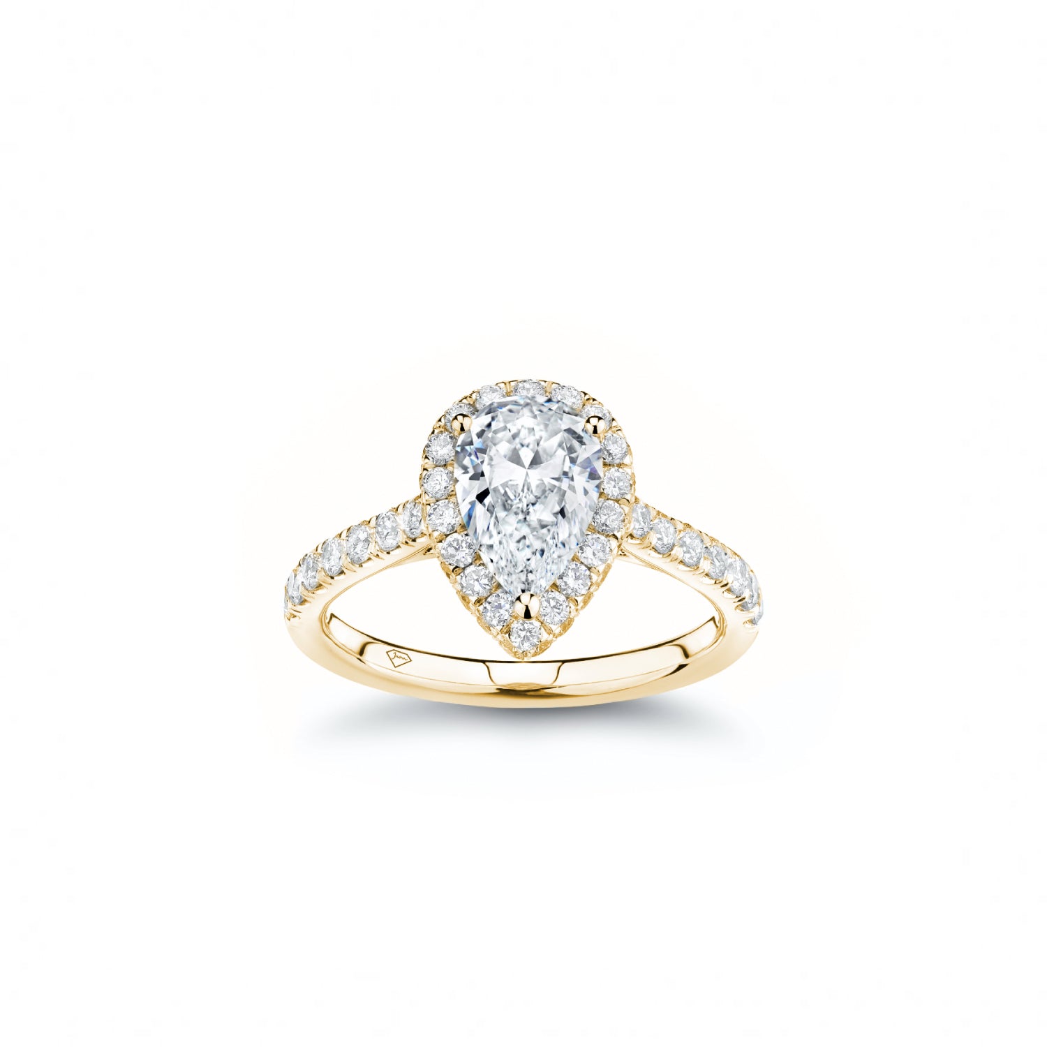 Pear-Shaped Diamond Halo Engagement Ring in Yellow Gold