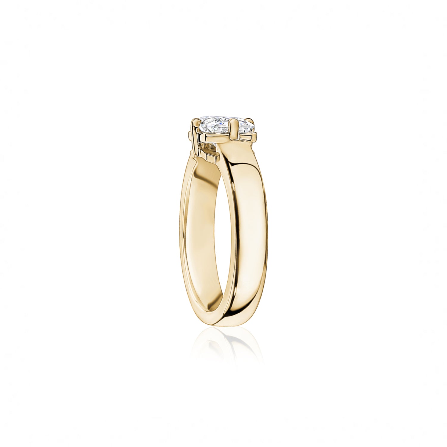 Radiant Cut Diamond Wide Band Solitaire Engagement Ring in Yellow Gold Side View