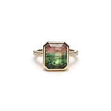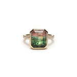 Step Cut Watermelon Tourmaline Diamond Pavé Bezel Ring Front View