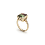 Step Cut Watermelon Tourmaline Diamond Pavé Bezel Ring Side View
