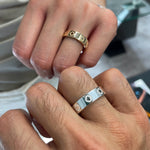 This men's wedding band features our signature step motif engraved across the ring and a sleek square edge design, exuding sophistication and style. With its polished finish, the ring reflects light beautifully, adding a touch of brilliance to your special day. Crafted to perfection, this wedding band is a symbol of enduring love and commitment.